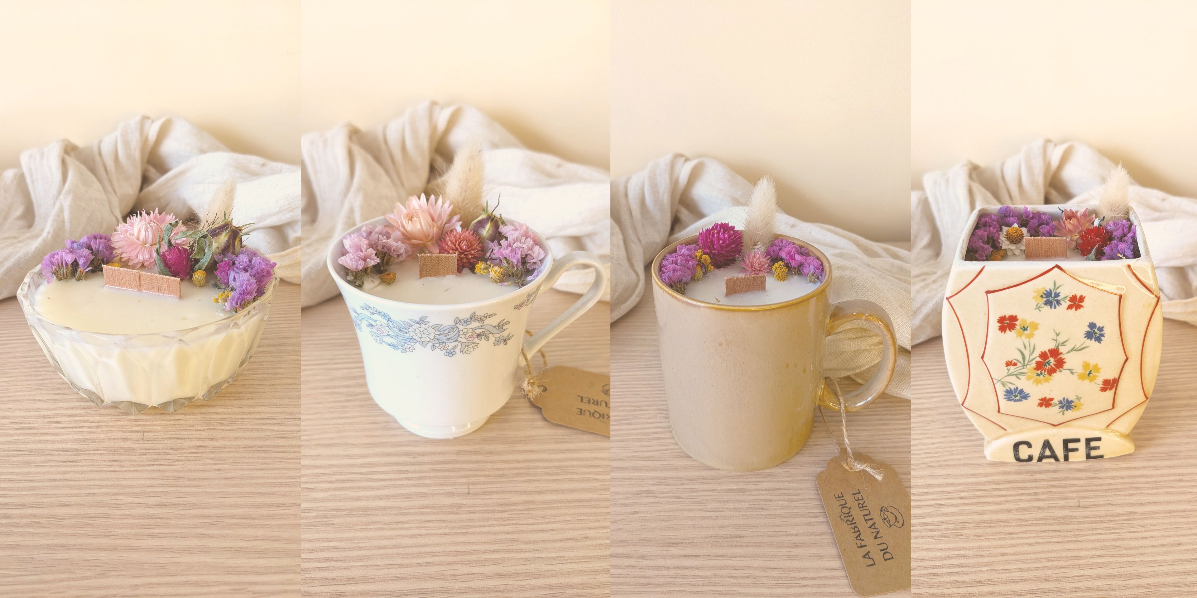 Cire de soja & olive, mèches en bois et fleurs séchées